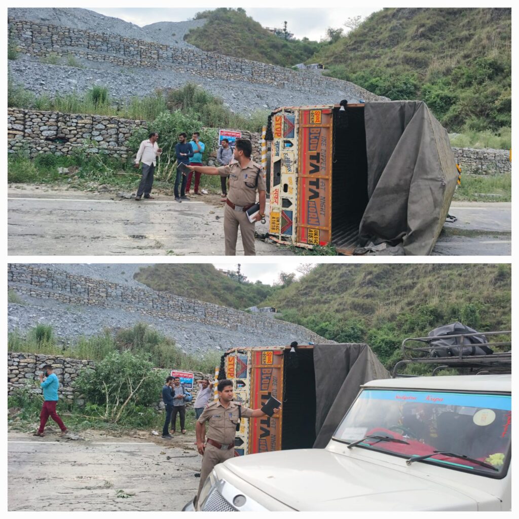 श्रीकोट श्रीनगर में हादसा, ट्रक पलटा, कोई जनहानि नहीं।